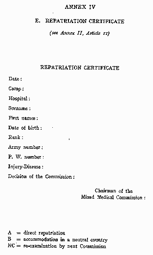 Section 2. Final ProvisionsANNEX I. Model Agreement Concerning Direct Repatriation and Accomodation in Neutral Countries of Wounded and Sick Prisoners of War