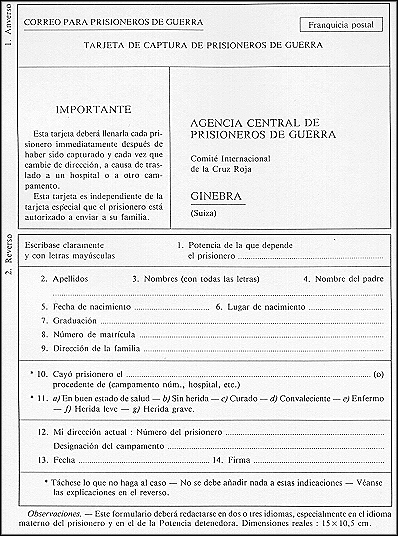 Sección V: Relaciones de los prisioneros de guerra con el exterior